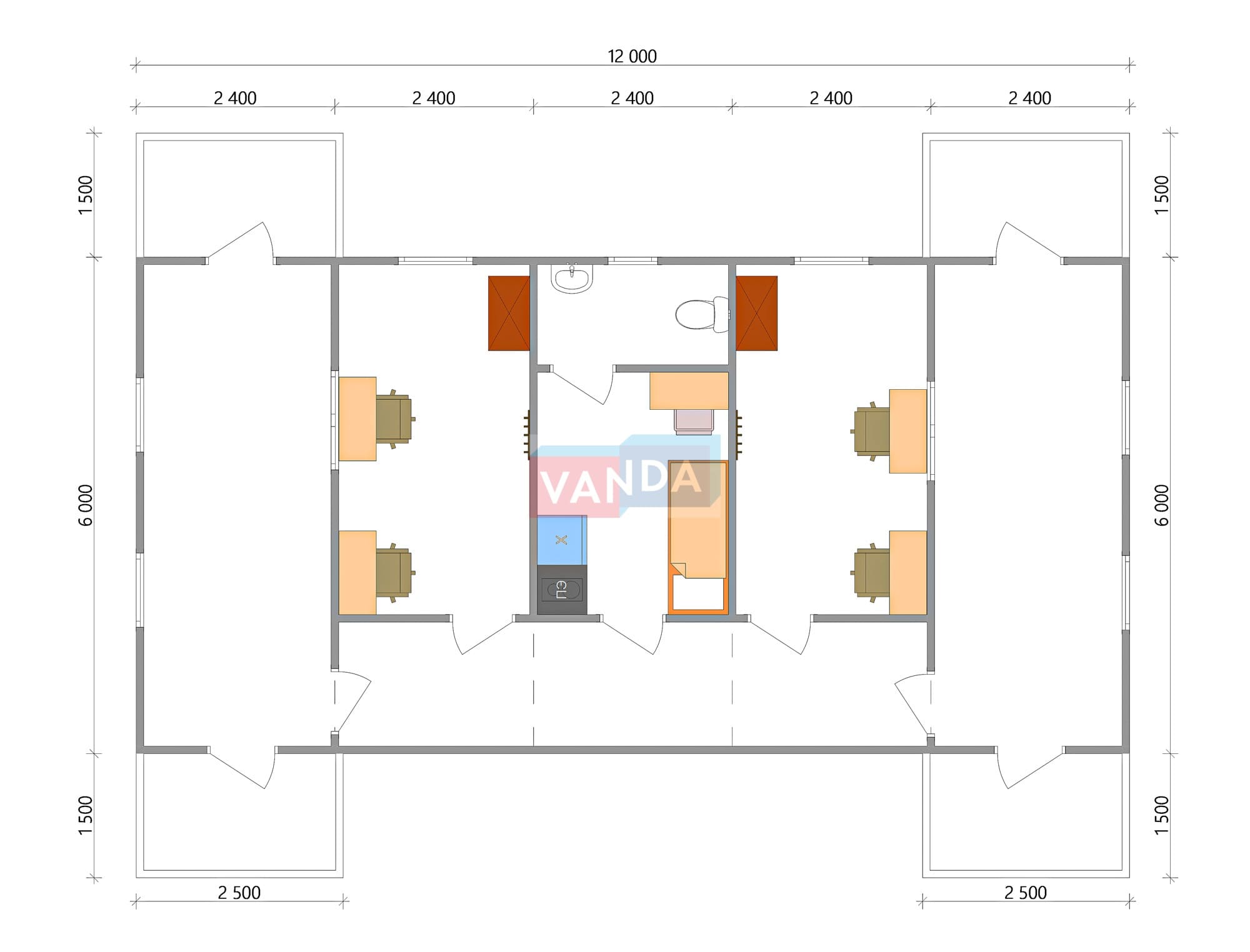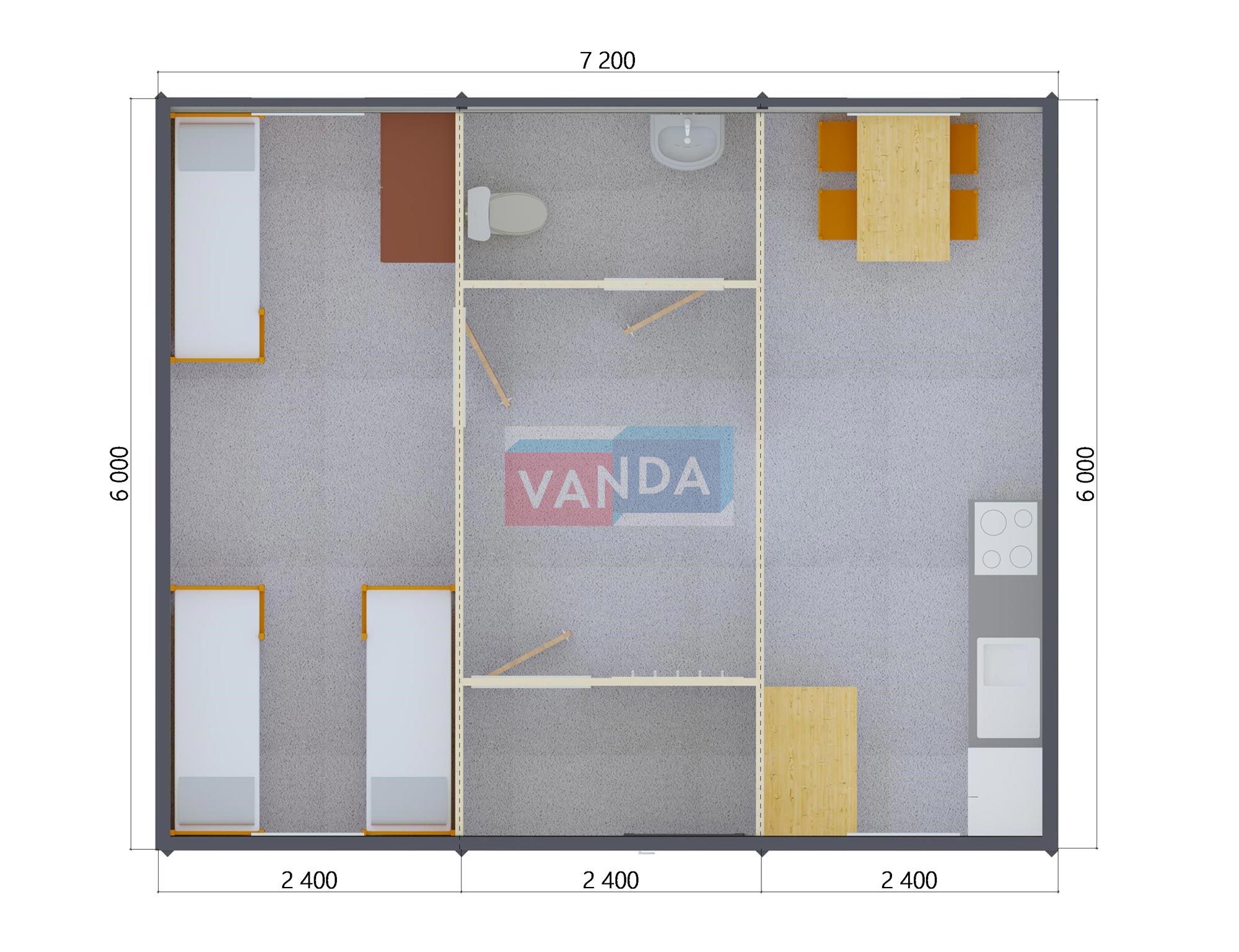 Модульная бытовка с плоской крышей 7.2x6.0 7.2x6.0 43.2 OSB 9 мм. Оцинкованный профлист 650 000 р. Уточняйте у менеджера