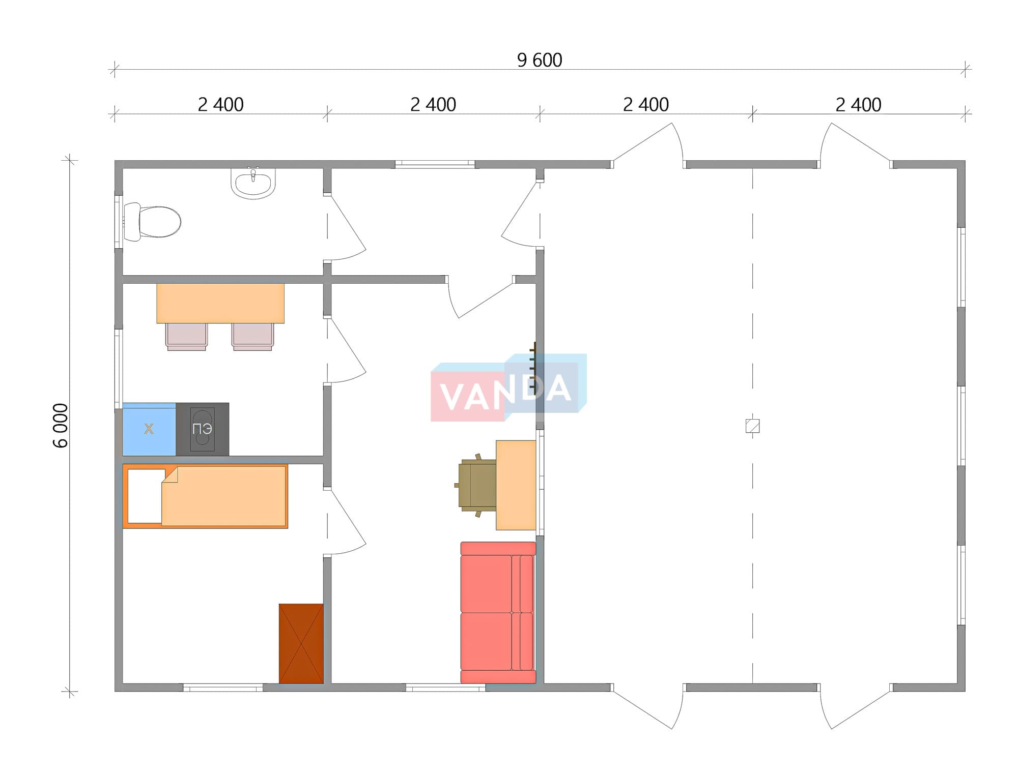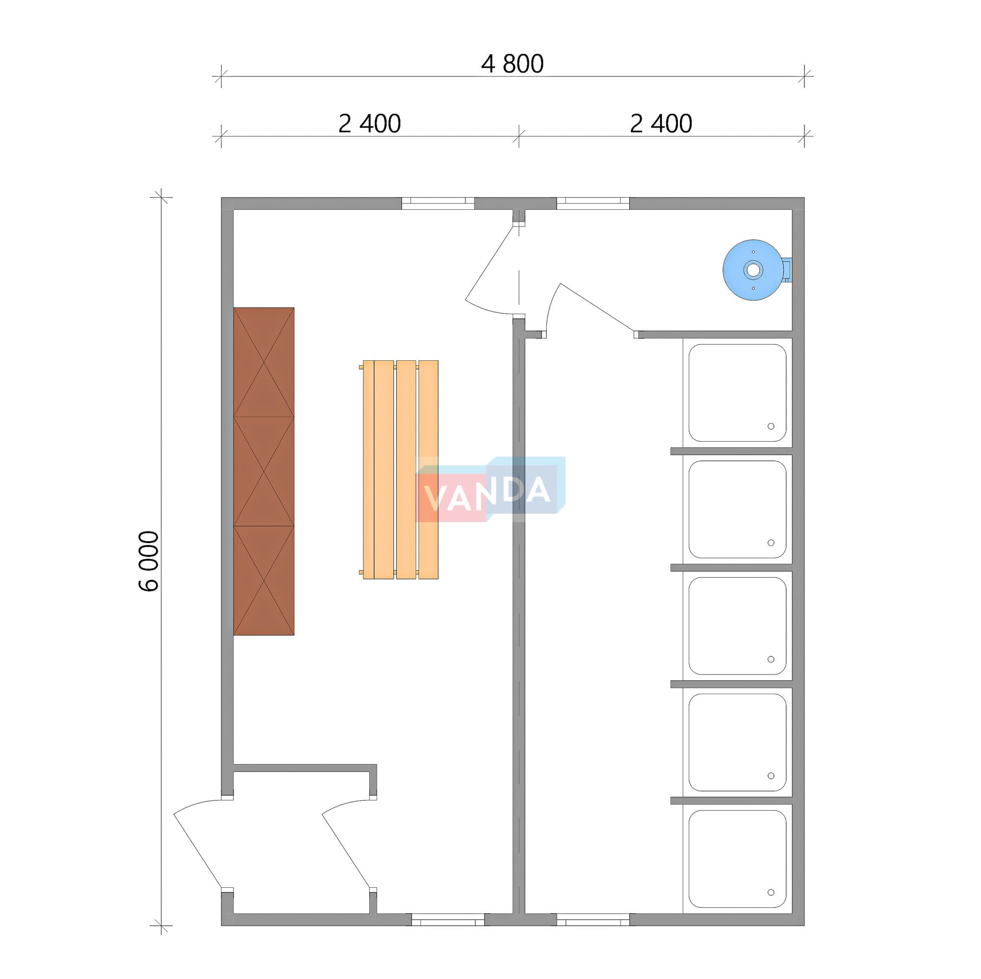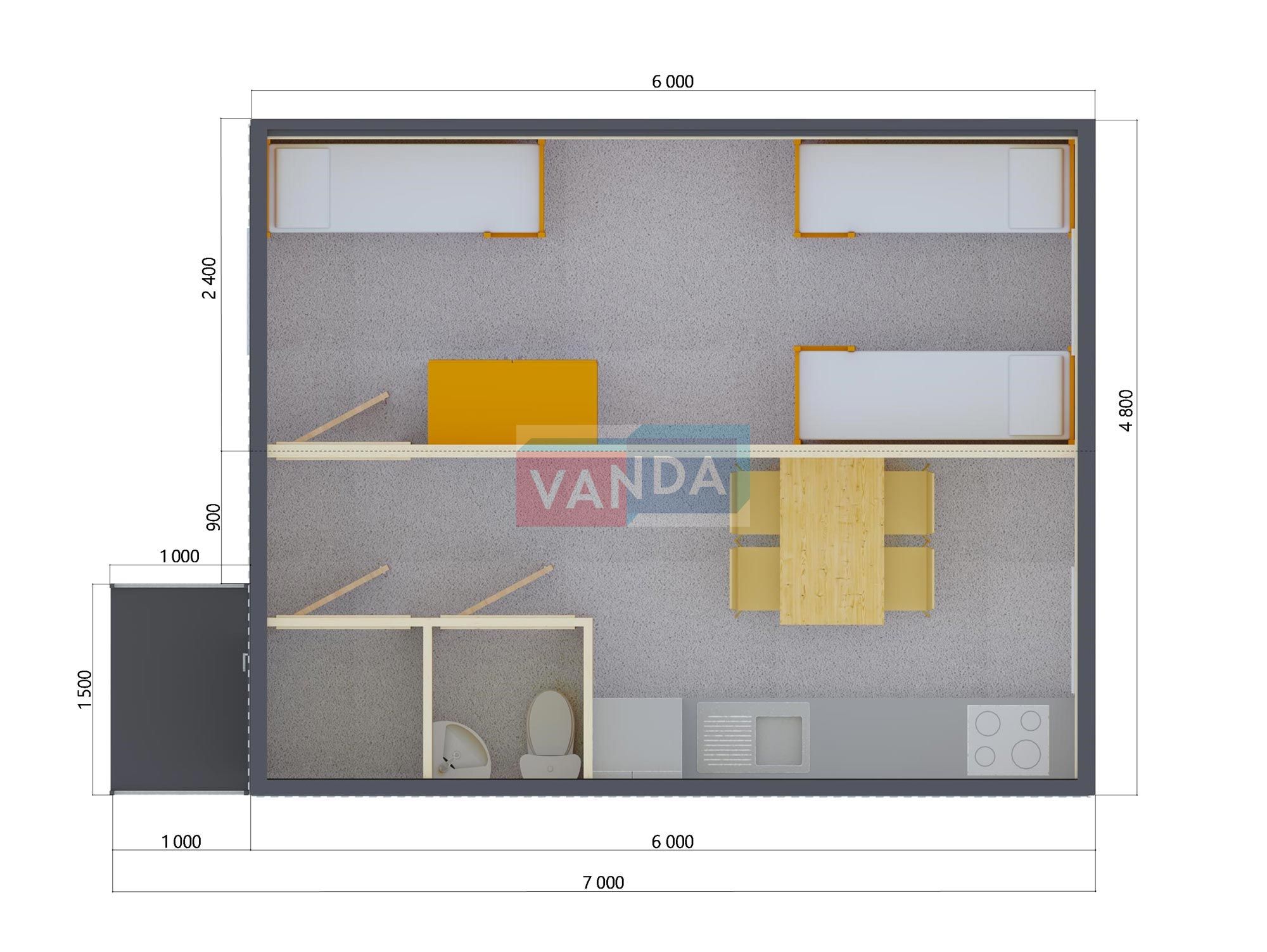 Модульная бытовка с плоской крышей 4.8х6.0 4.8х6.0 28.8 OSB 9 мм. Оцинкованный профлист 500 000 р. Уточняйте у менеджера