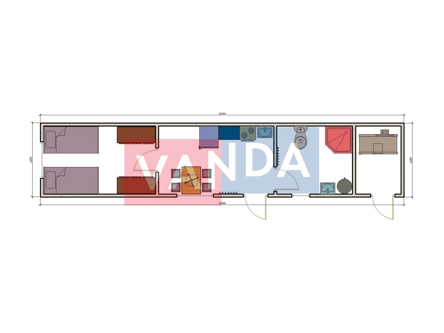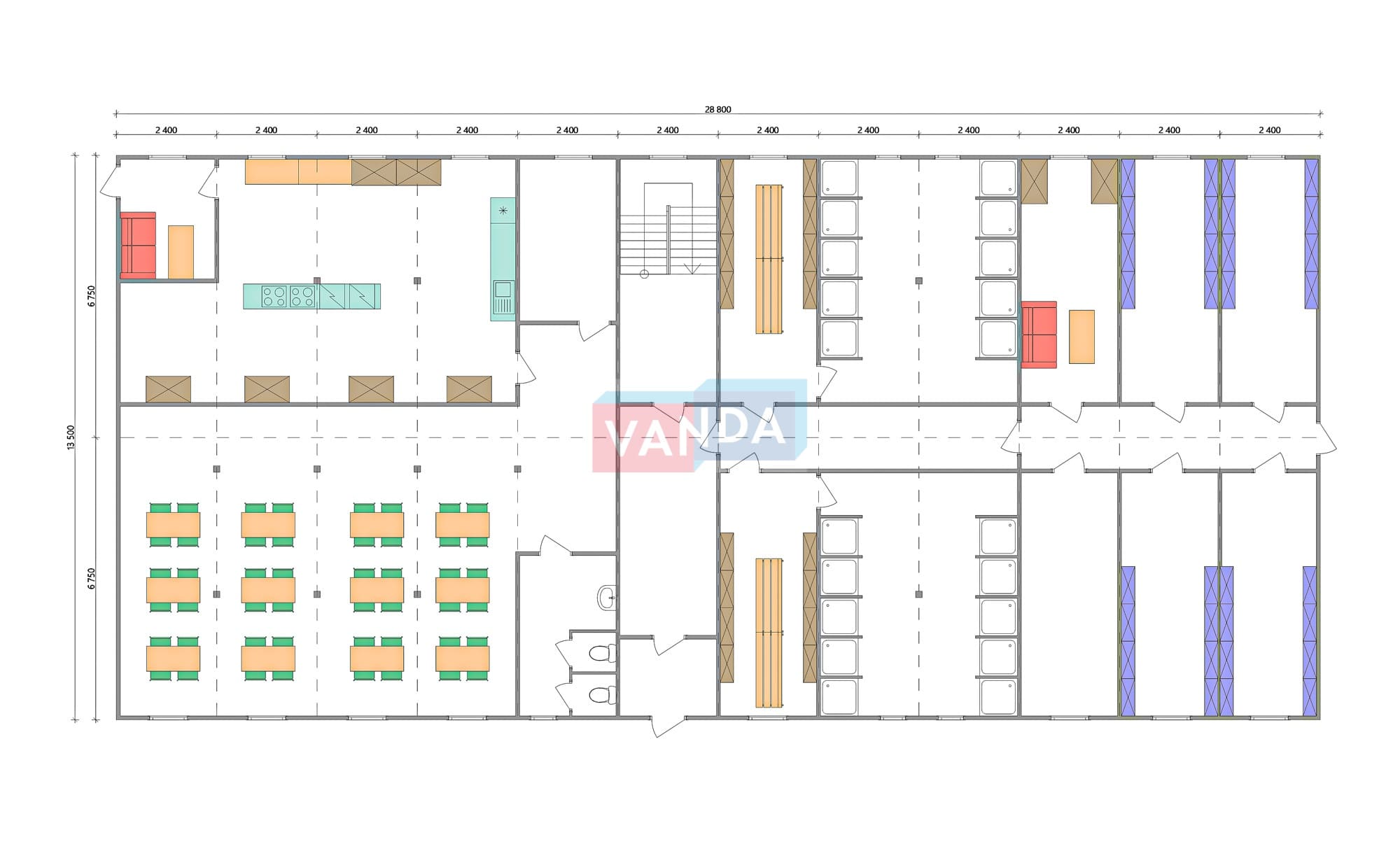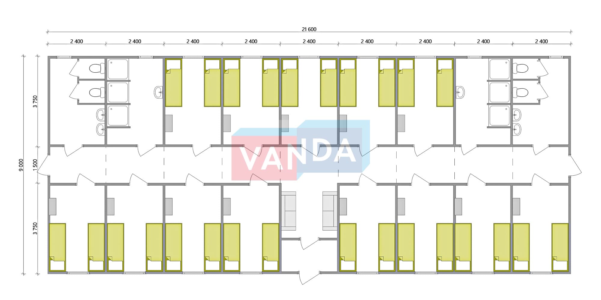 Проект вахтового посёлка 14.0х57,6 14x57.6 806.4 OSB 9 мм. Оцинкованный профлист 20 700 000 р. Уточняйте у менеджера